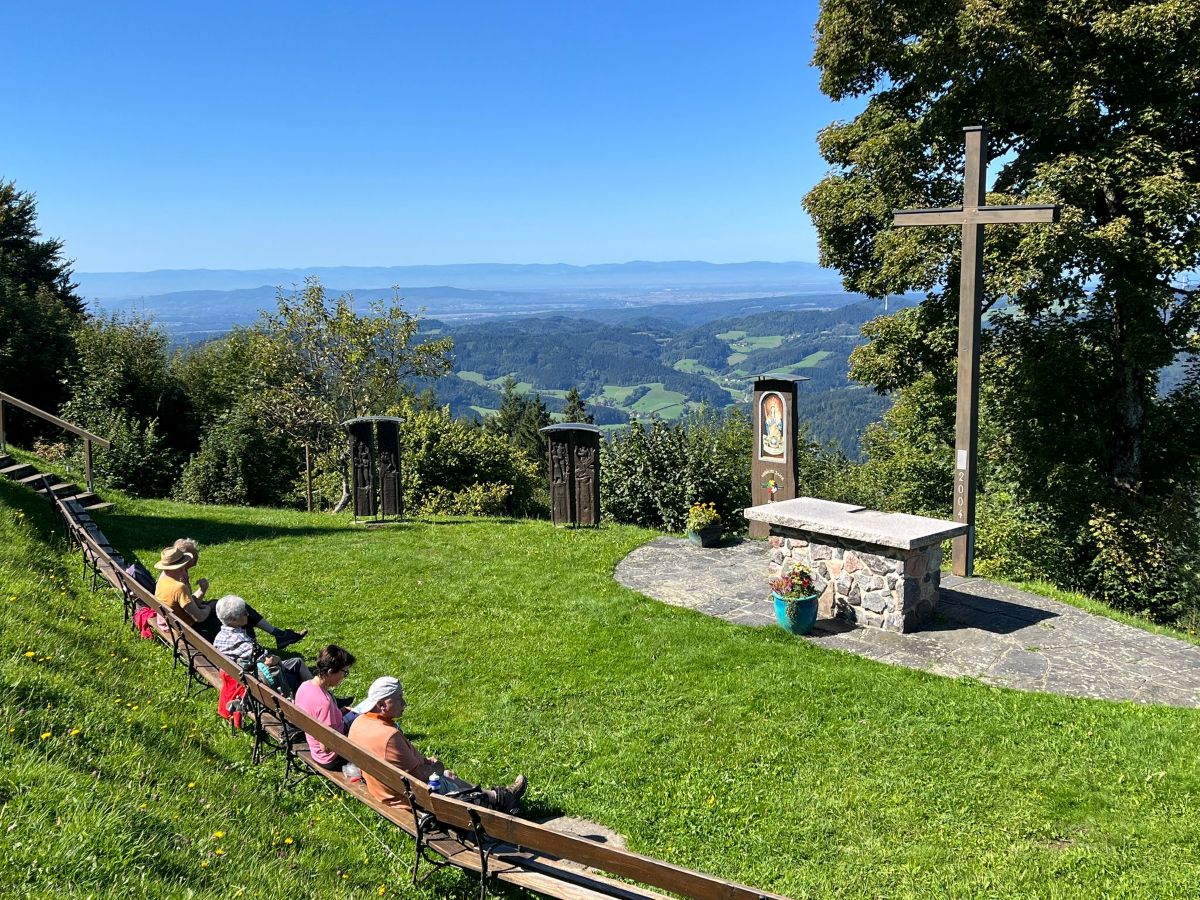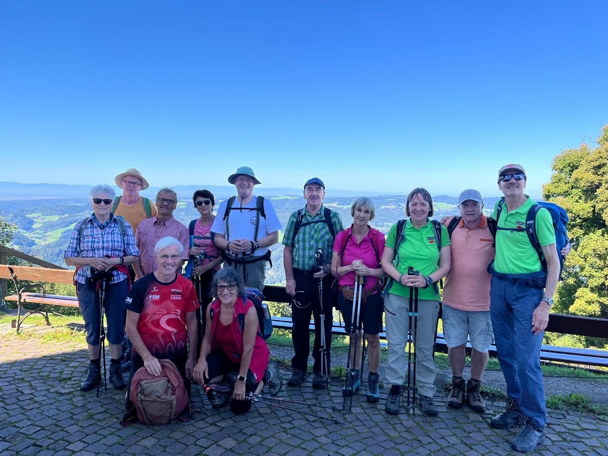 Es hätte nicht schöner sein können: 13 Wanderinnen und Wanderer erklommen den Hörnleberg mit seiner Wallfahrtskapelle an einem Sonnentag mit angenehmen Temperaturen. So wurde der auf 905 m liegende Gipfel „erobert“, und die Gruppe genoss eine Vesperpause mit fantastischem Ausblick. Der Rückweg führte über Bleibach, und die Zugfahrt nach Kirchzarten wurde mit einer fröhlichen Runde im „Fiesta“ beendet.
