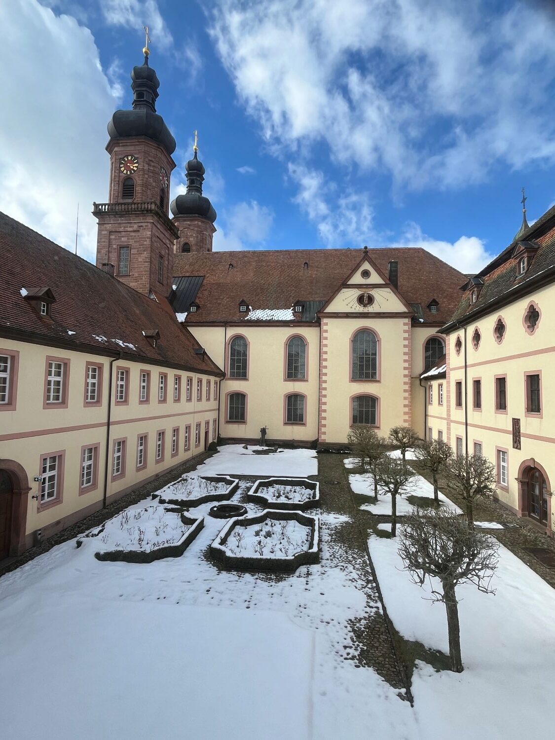 Im Anschluss erwartete uns eine eindrucksvolle Führung durch die barocke Dorf- und Klosterkirche St. Peter. Mit großer Sachkenntnis und spürbarer Begeisterung führte uns Elisabeth Schiefer durch die Kirche, den Kreuzgang und die prachtvolle Rokoko-Bibliothek. Dabei gelang es ihr, die vielfältigen weltlichen, geistlichen und kulturhistorischen Aspekte lebendig zu vermitteln. Besonders eindrucksvoll war der Blick von den Anfängen im 11. Jahrhundert, als die erste Kirche durch die Zähringer Herzöge errichtet wurde, bis zum Ende des Klosterlebens Anfang des 19. Jahrhunderts und Eingliederung zum Erzbistum Freiburg.