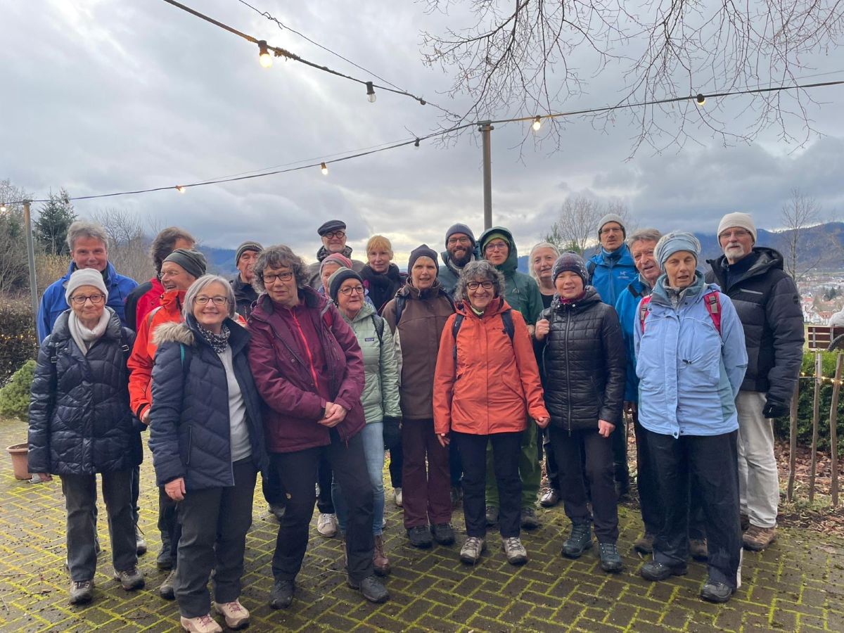 Am Spätnachmittag sind 22 Wanderinnen und Wanderer hoch zum Giersberg in Kirchzarten aufgebrochen. Auch wenn diesmal der Gruppe kein spektakulärer Sonnenuntergang vergönnt war, tat das der guten Stimmung keinen Abbruch – bei allen war die Laune bestens.