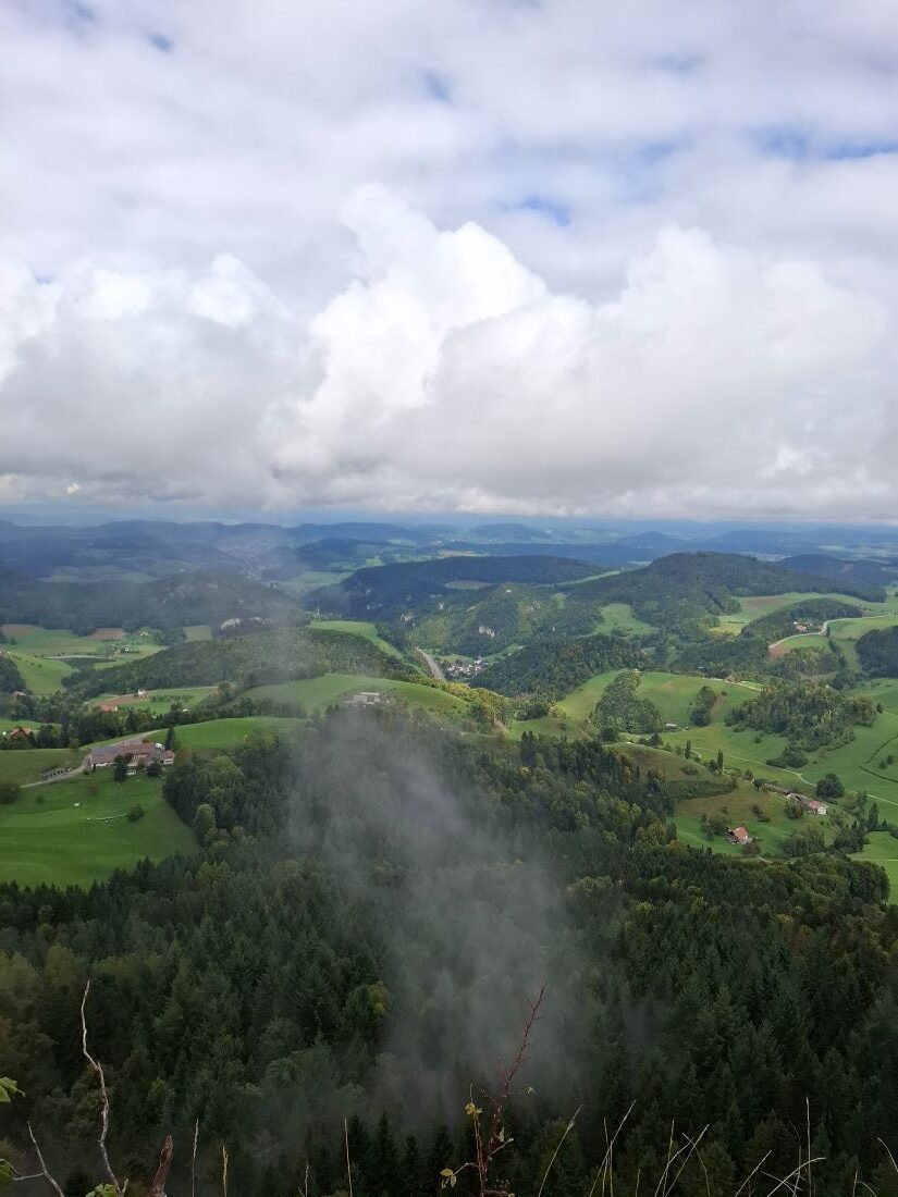 Der abwechslungsreiche Weg führte durch Wälder, über Wiesen und immer wieder zu schönen Aussichtspunkten. Oben angekommen, belohnte ein herrlicher Rundblick über das Jura und bis in die Alpen hinein.