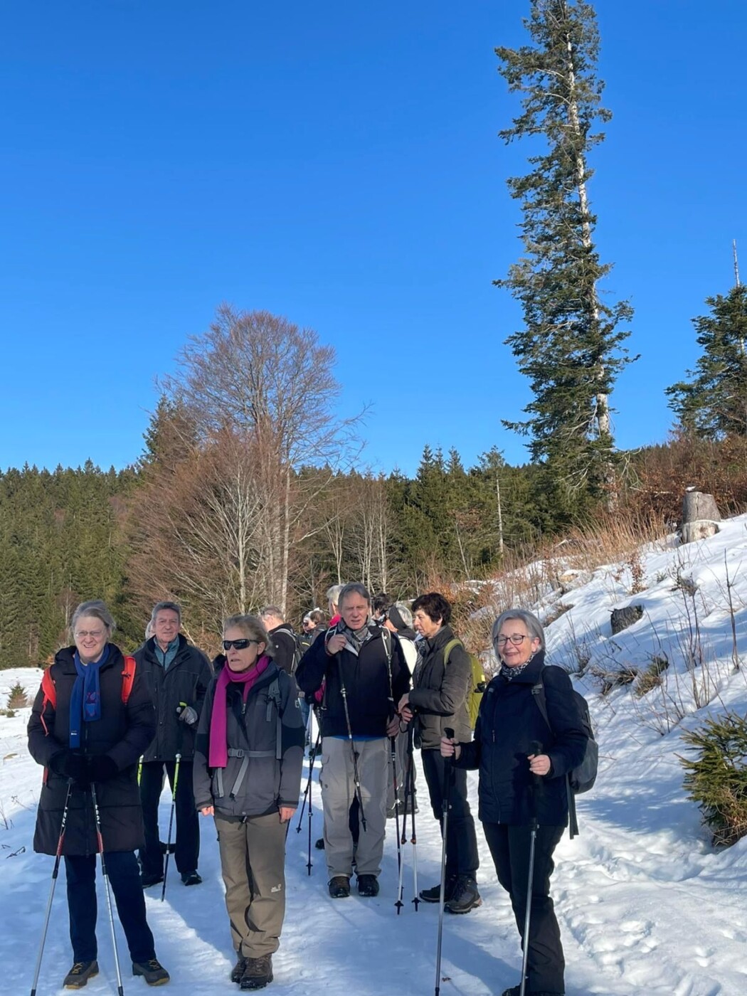 Alles richtig gemacht: Am Sonntagmorgen lag das Dreisamtal im Nebel, aber 16 Wanderinnen und Wanderer starteten nach Busfahrt zum Notschrei bei herrlichem Wetter zu ihrer ca. 5 km langen Wanderung. Abschluss war im „Grünen Baum“ in Muggenbrunn, danach brachte der Bus die Wandergruppe zurück nach Kirchzarten.